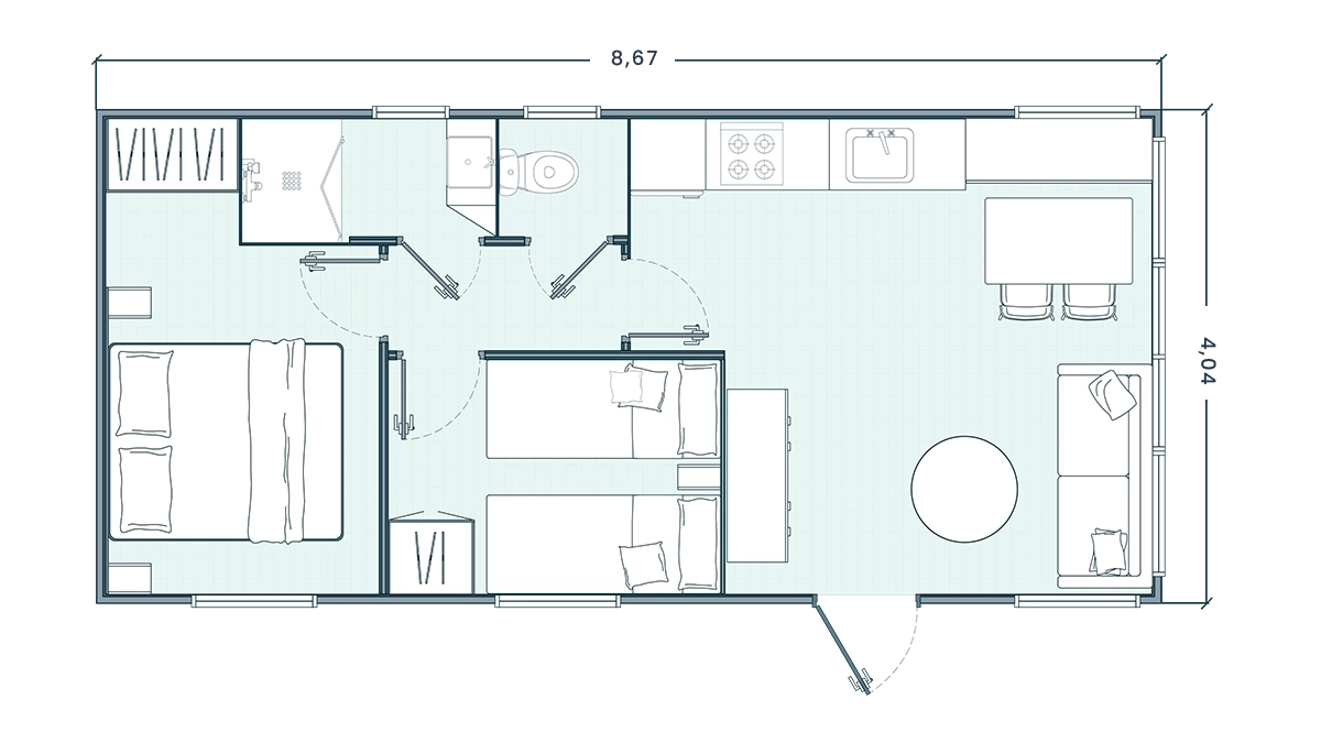 Le mobil-home Bora Bora Double 863 dispose de tout ce dont vous avez besoin pour passer un séjour confortable. Il comprend un équipement complet avec la possibilité d’ajouter différents compléments pour un séjour quotidien plus agréable. Le mobil-home est doté de l’équipement standard suivant :