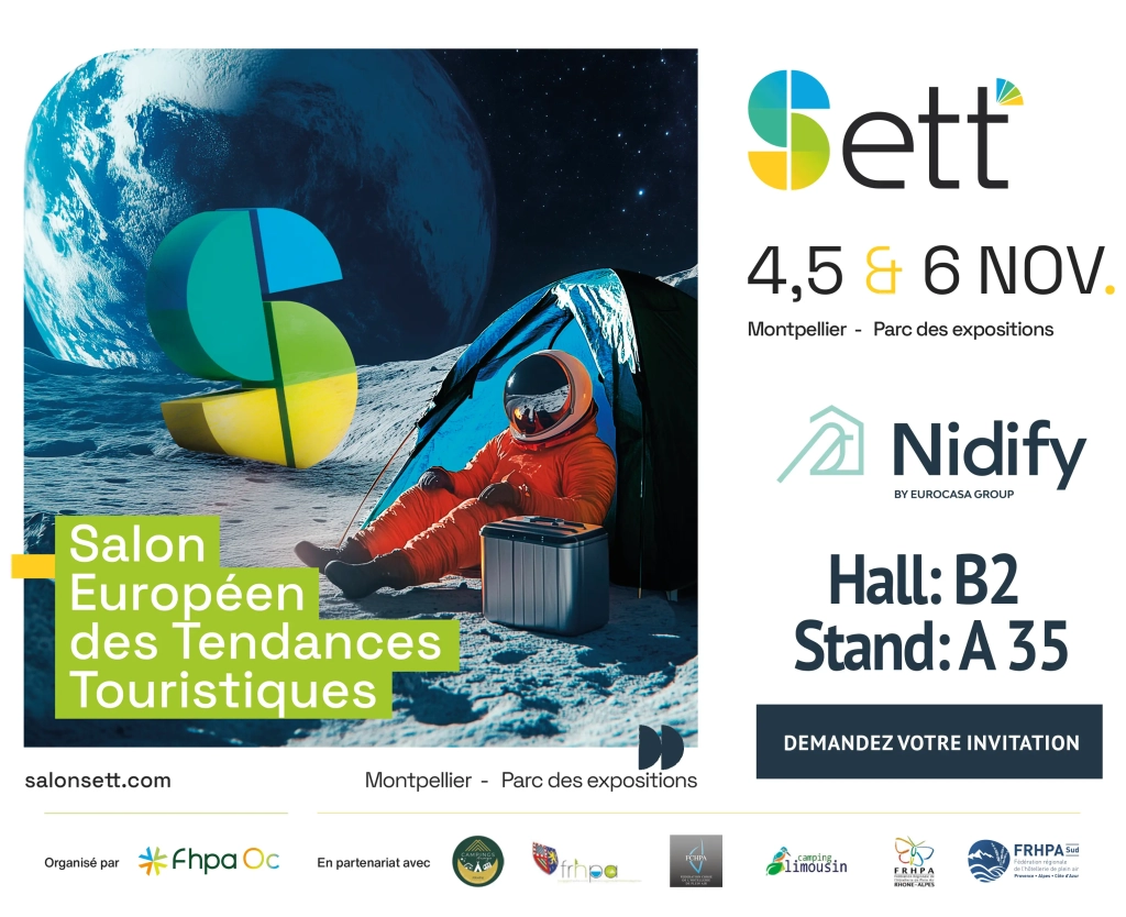 📍 Rendez-vous à Montpellier, au Salon SETT 2025, pour découvrir comment Nidify construit les rêves de l’hospitalité moderne.